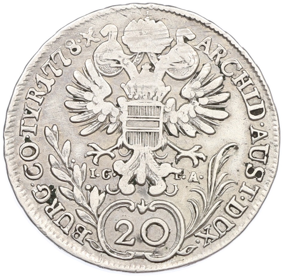 20 крейцеров 1778 года Австрия (Мария Терезия — Орел со щитом Австрии)