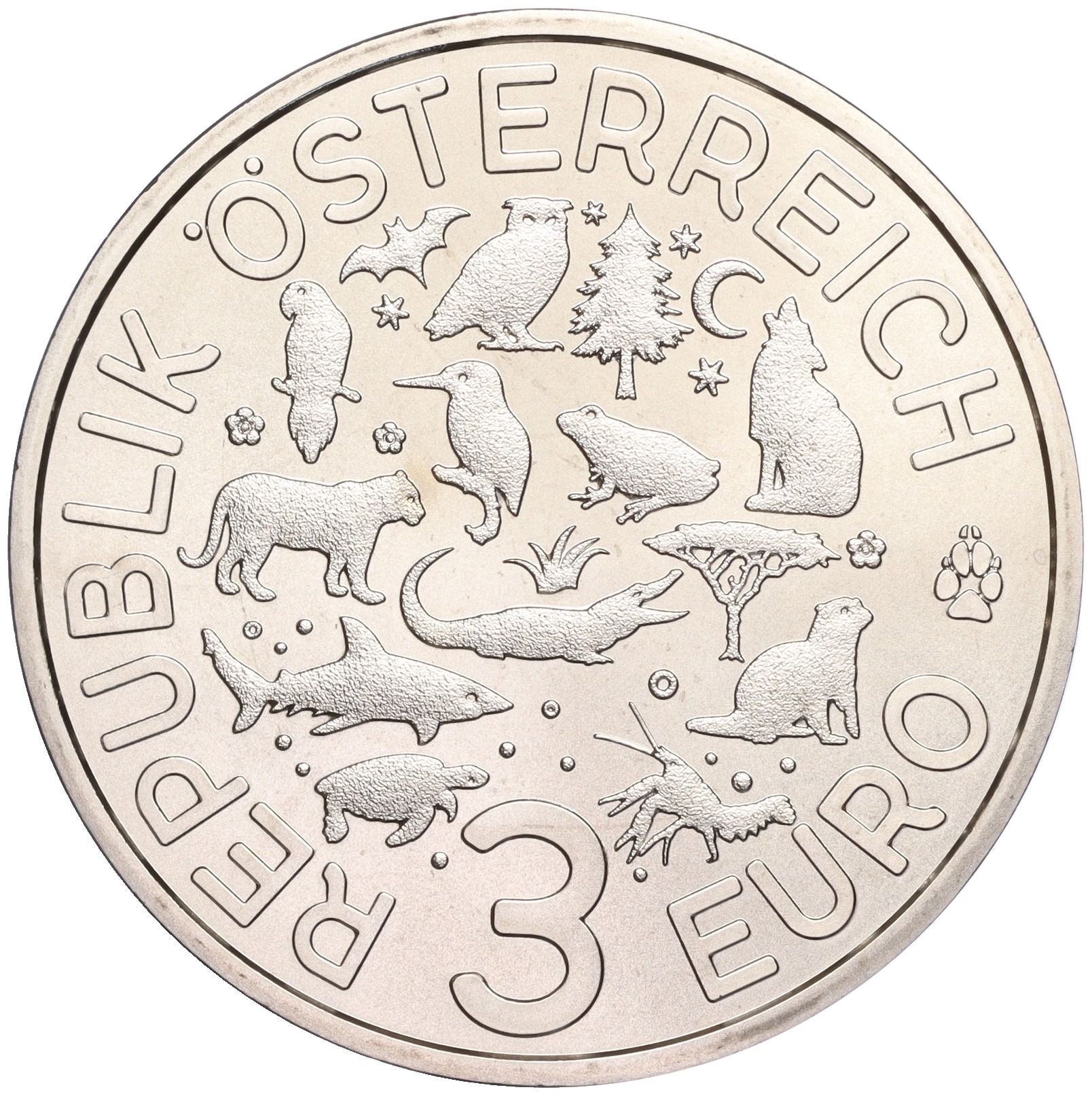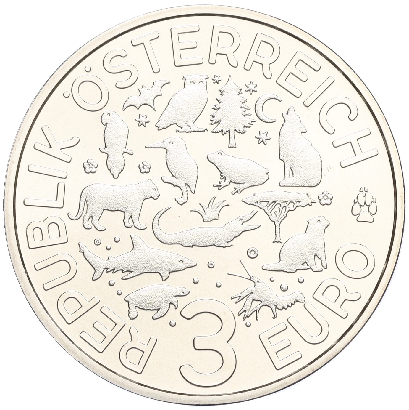 3 евро 2017 года Австрия «Животные со всего мира — Волк»