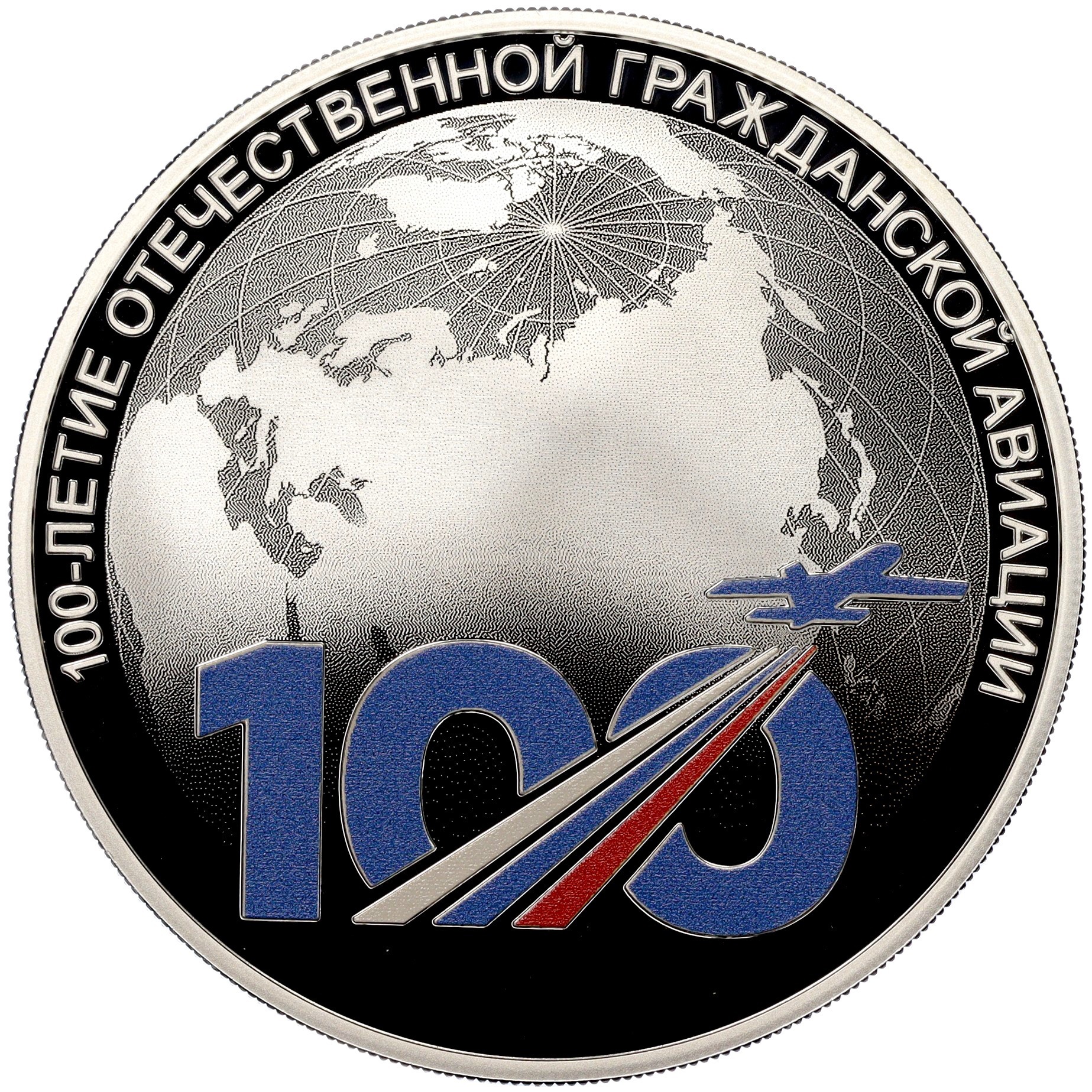 3 рубля 2023 года СПМД «100 лет отечественной гражданской авиации»
