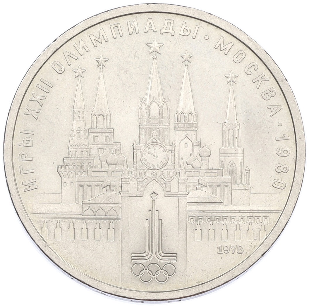 1 рубль 1978 года «XXII летние Олимпийские Игры 1980 в Москве (Олимпиада-80) — Кремль» Без ошибки на циферблате (Цифра IV правильная)