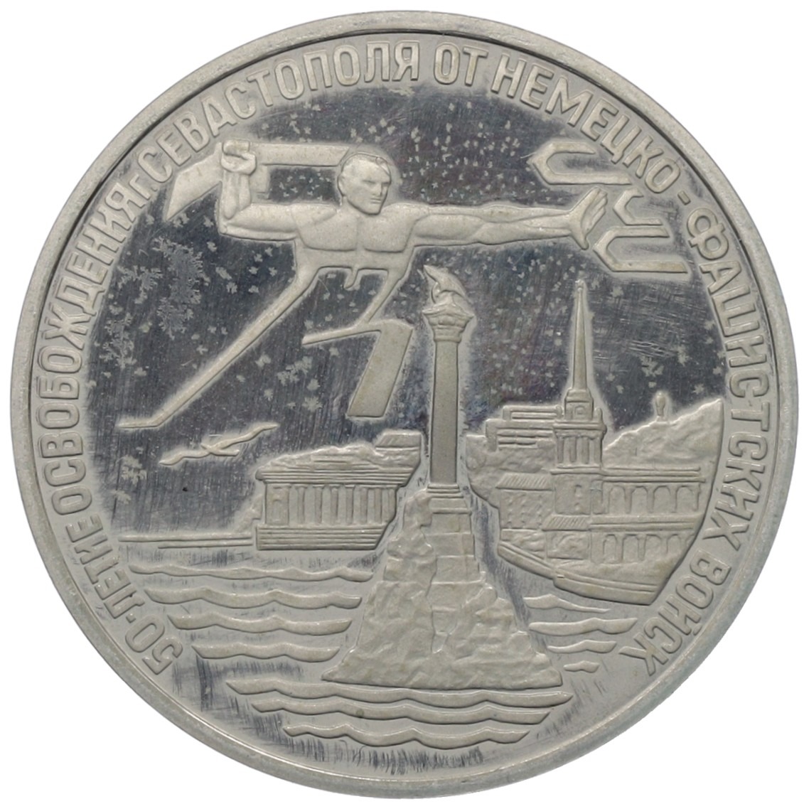 3 рубля 1994 года ЛМД «50 лет освобождения Севастополя от немецко-фашистских войск»