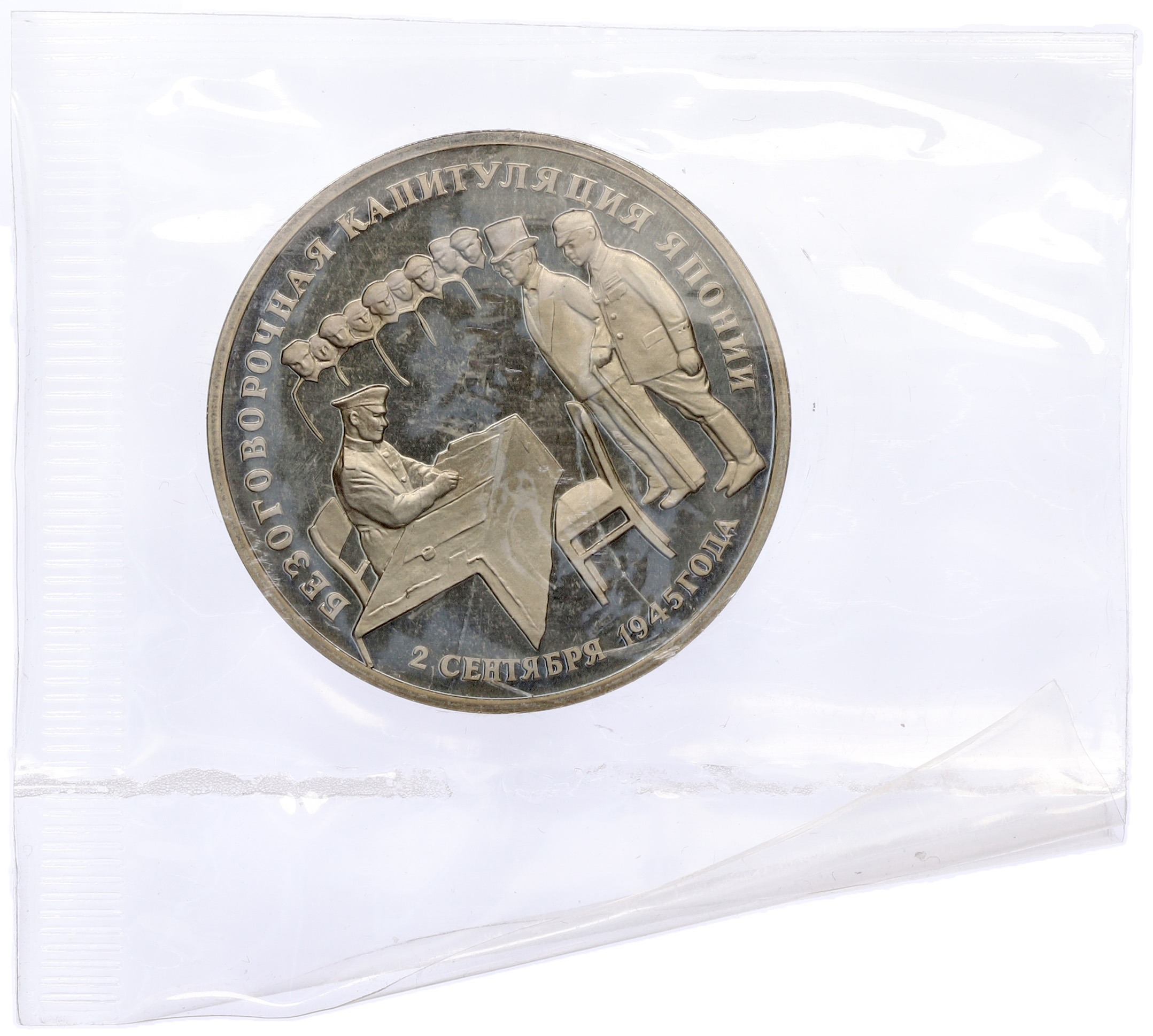 3 рубля 1995 года ЛМД «Подписание Акта о безоговорочной капитуляции Японии»