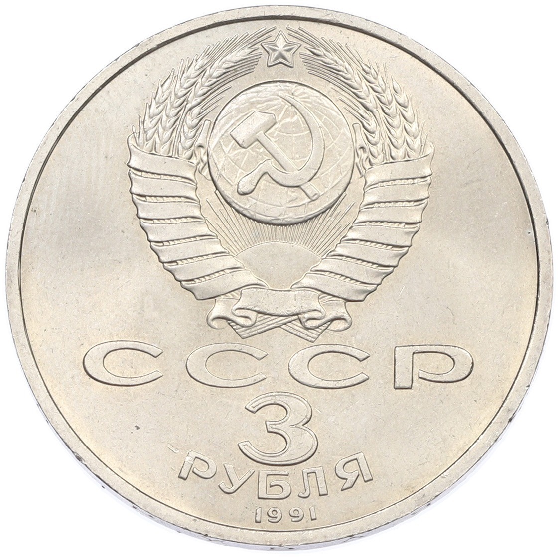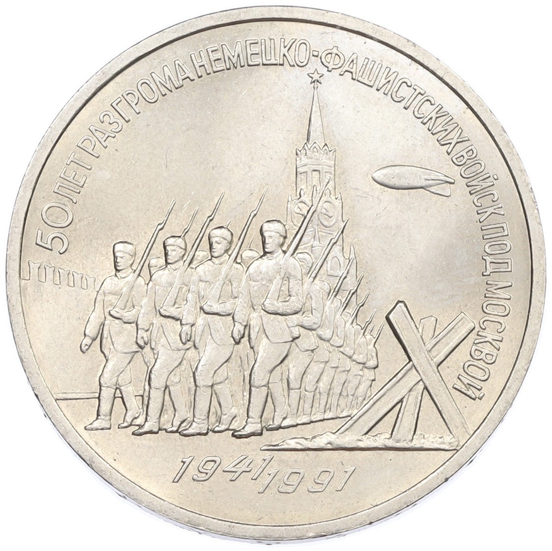 3 рубля 1991 года «50 лет разгрома немецко-фашистских войск под Москвой»