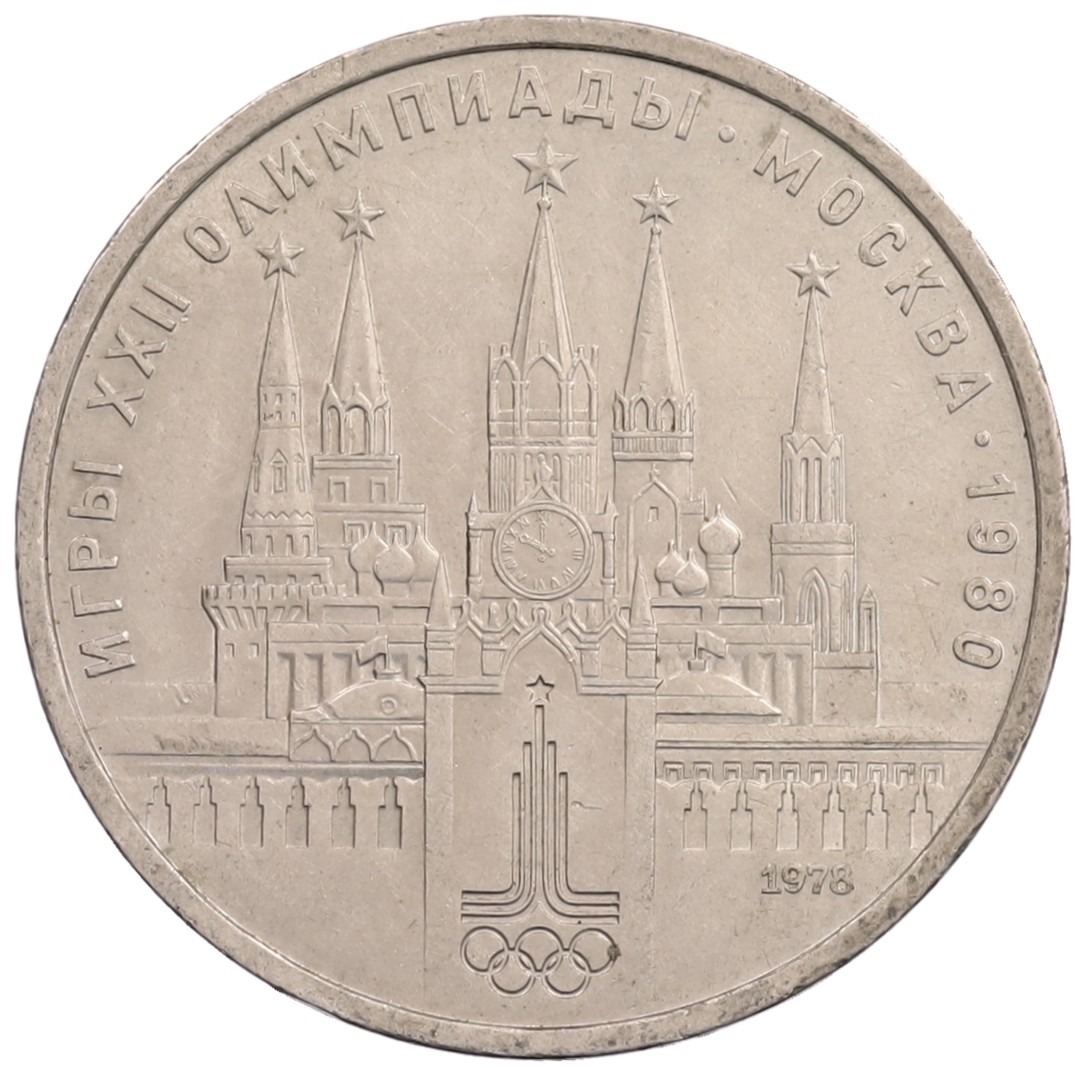1 рубль 1978 года «XXII летние Олимпийские Игры 1980 в Москве (Олимпиада-80) — Кремль» Без ошибки на циферблате (Цифра IV правильная)