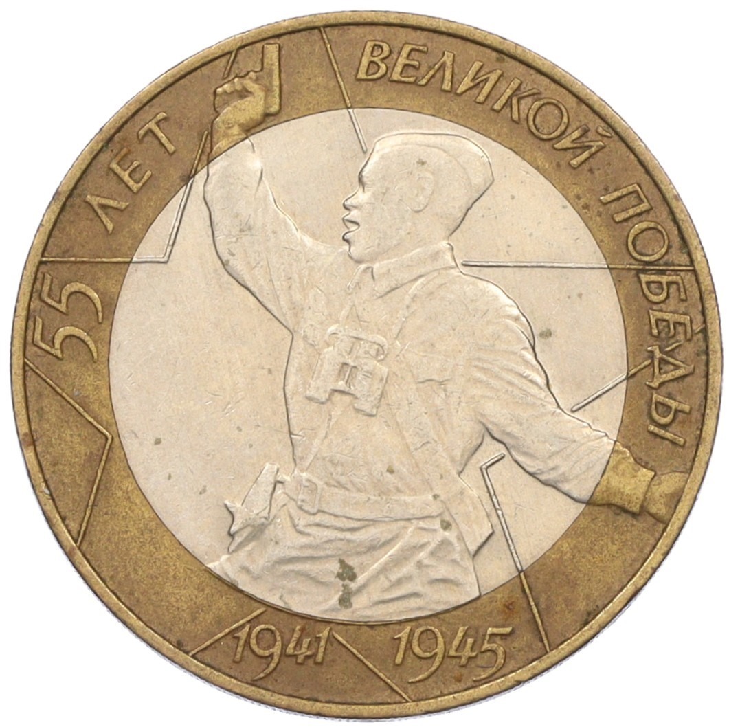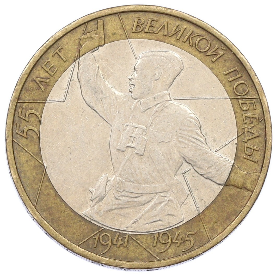10 рублей 2000 года СПМД «55 лет Великой Победы»