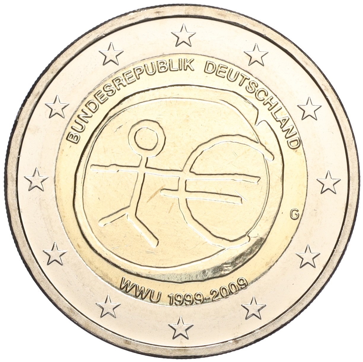 2 евро 2009 года G Германия «10 лет монетарной политики ЕС (EMU) и введения евро»