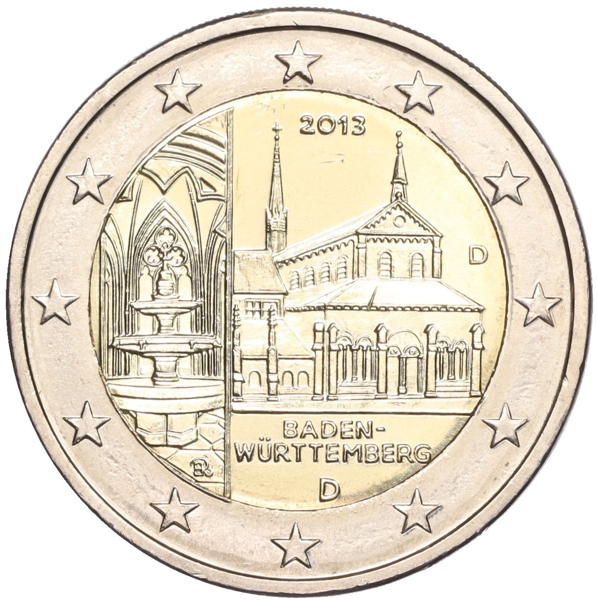 2 евро 2013 года D Германия «Федеральные земли Германии — Баден-Вюртемберг (Монастырь Маульбронн)»