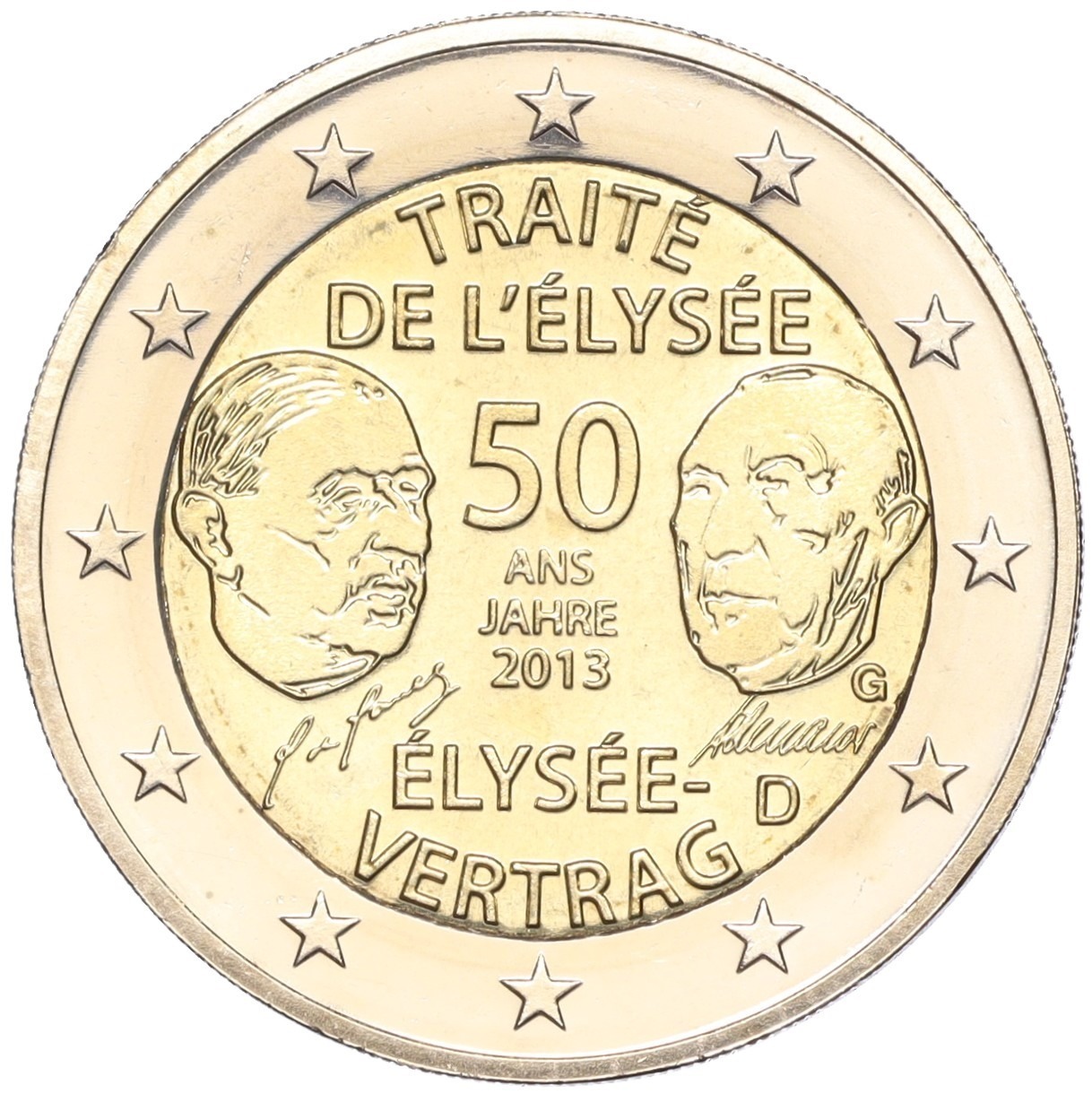 2 евро 2013 года G Германия «50 лет подписанию Елисейского договора»