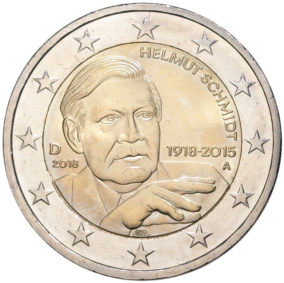 2 евро 2018 года А Германия «100 лет со дня рождения Гельмута Шмидта»