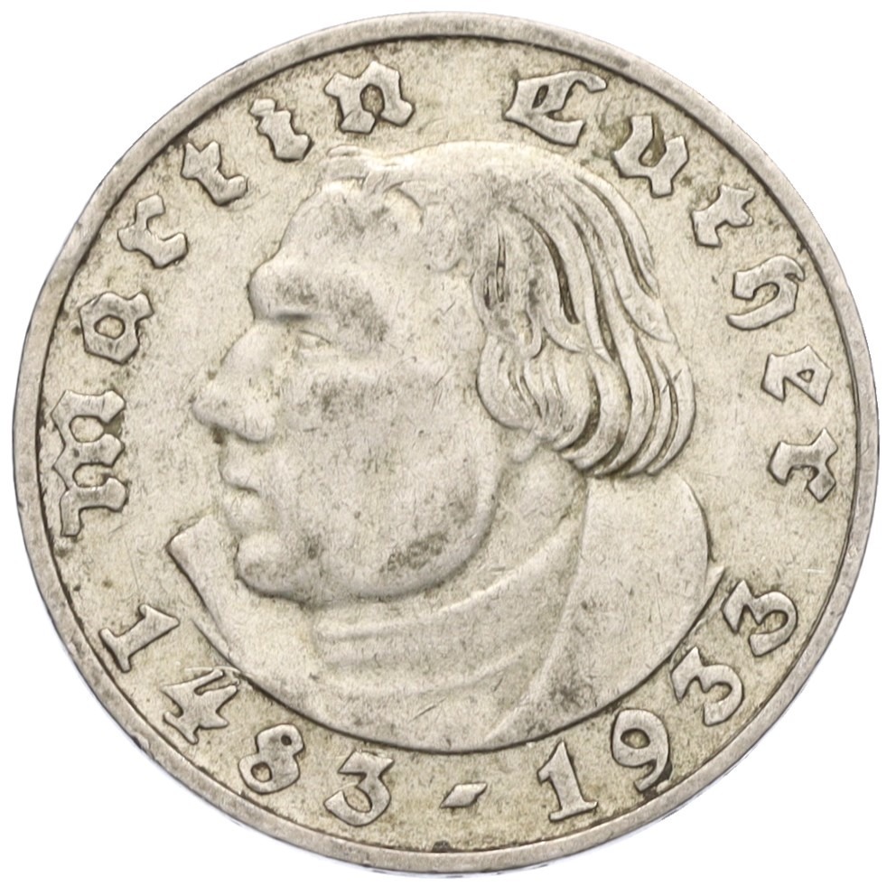 2 рейхсмарки 1933 года D Германия «450 лет со дня рождения Мартина Лютера»