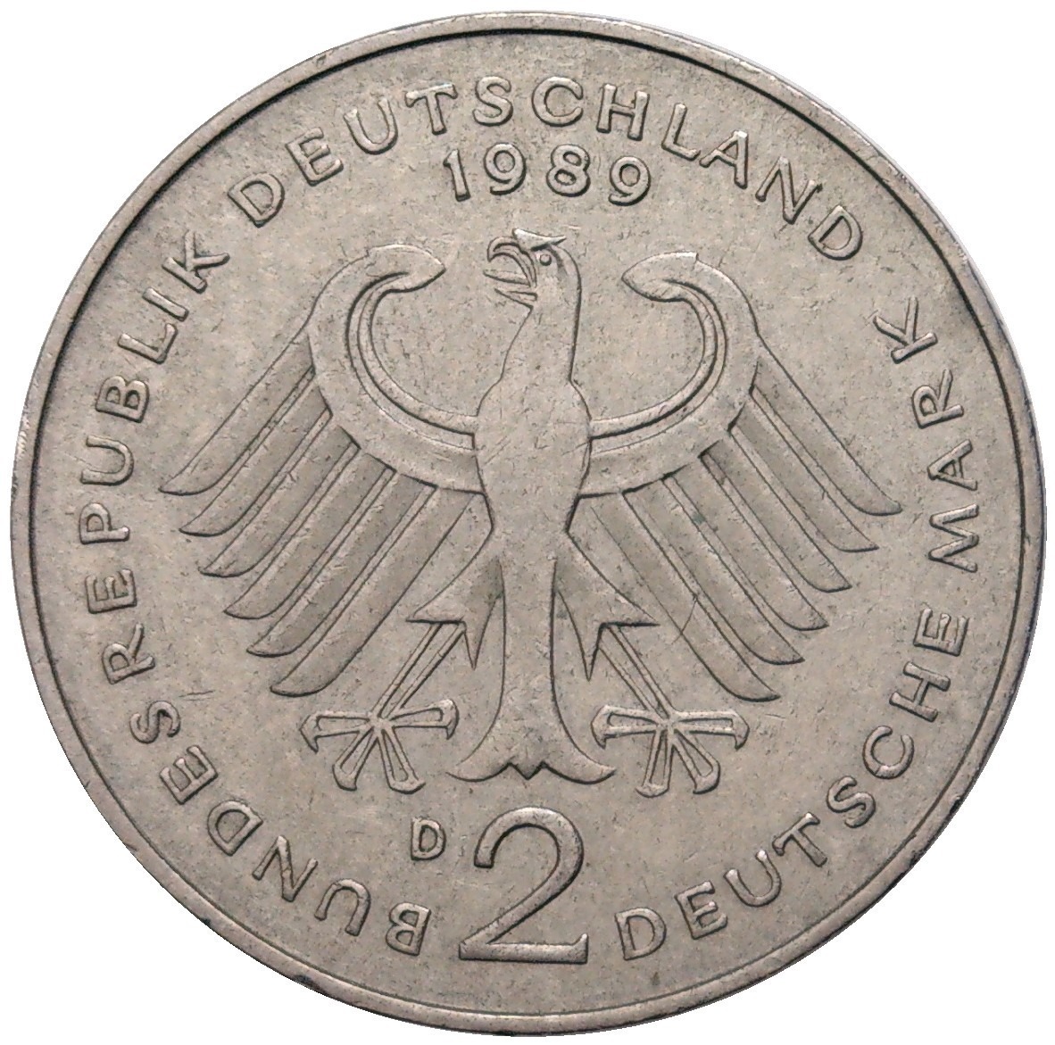 2 марки 1989 года D Западная Германия (ФРГ) «Курт Шумахер»