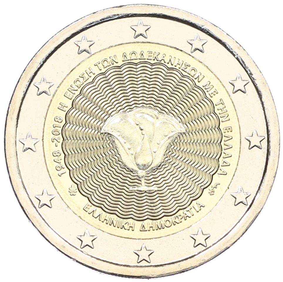 2 евро 2018 года Греция «70 лет cоюзу Додеканеса с Грецией»