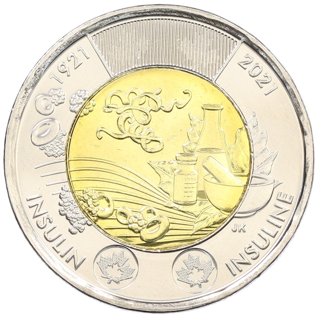 2 доллара 2021 года Канада «100 лет открытию инсулина»