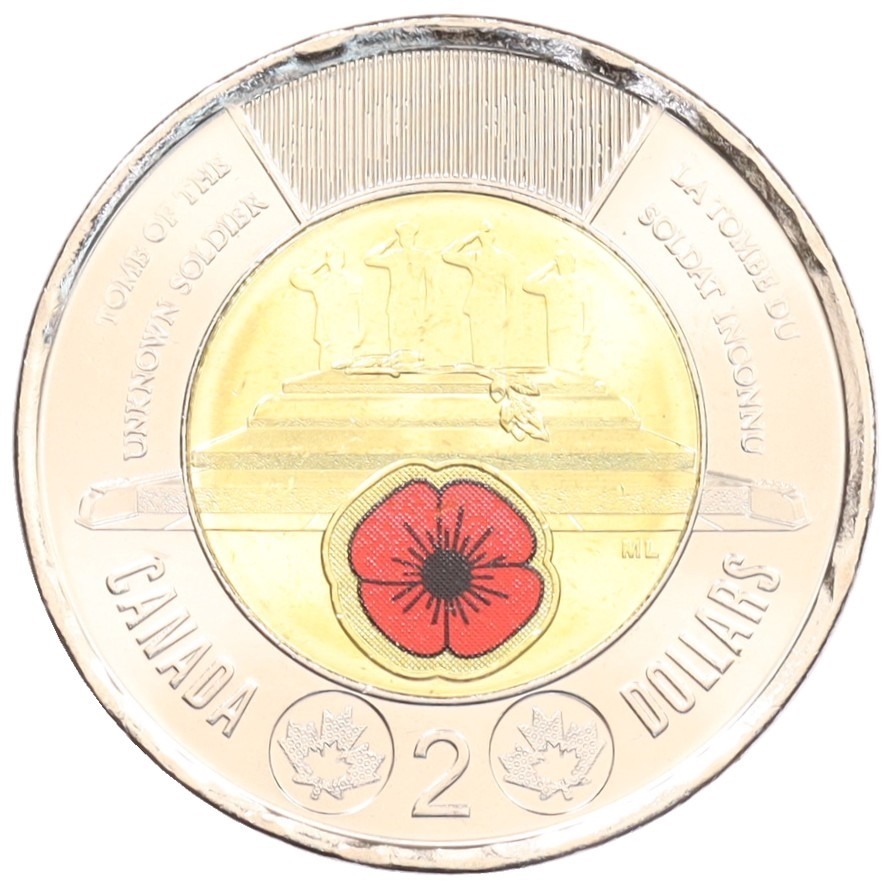 2 доллара 2025 года Канада «Чествование неизвестного солдата Канады» (Цветное покрытие)