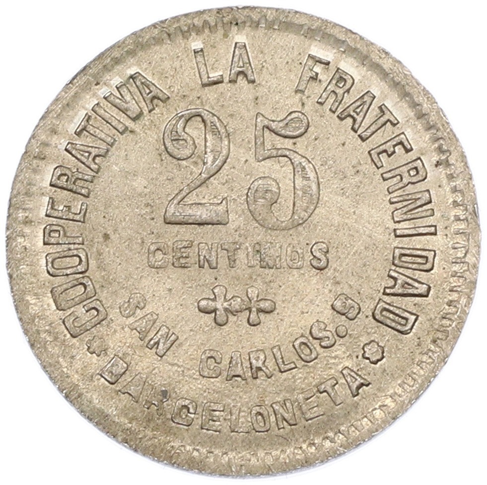 Торговый (кооперативный) жетон 25 сентимо 1915 года Испания — провинция Барселона