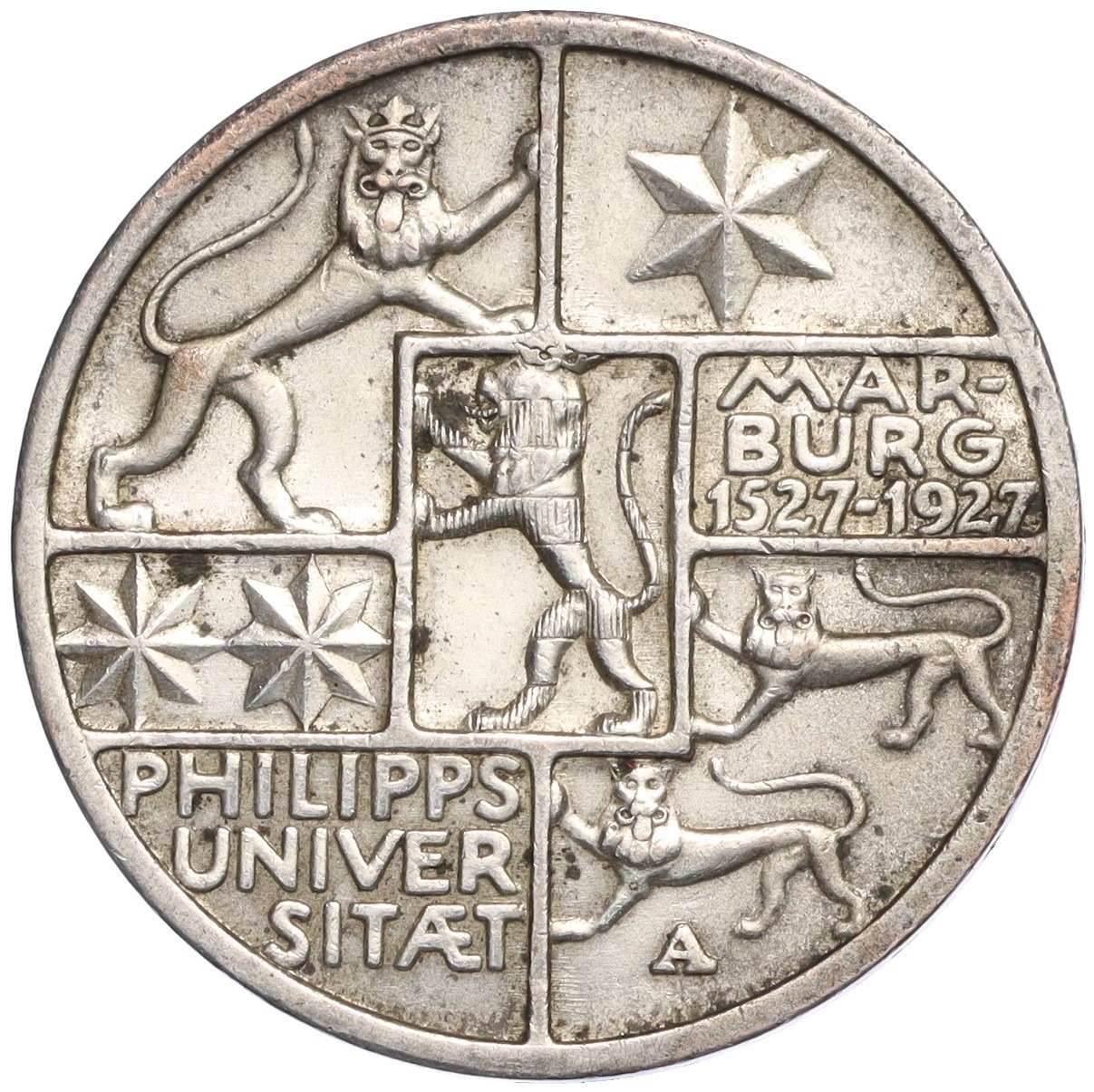3 рейхсмарки 1927 года A Германия «400 лет Марбургскому университету имени Филиппа»