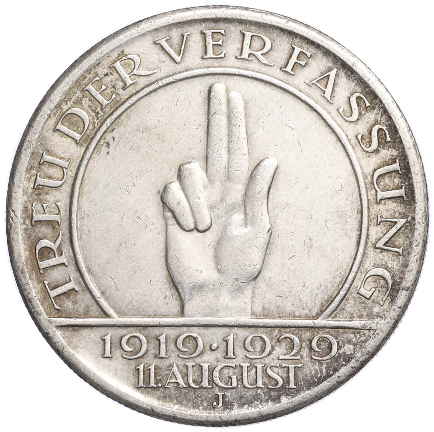 5 рейхсмарок 1929 года J Германия «10 лет Веймарской конституции»