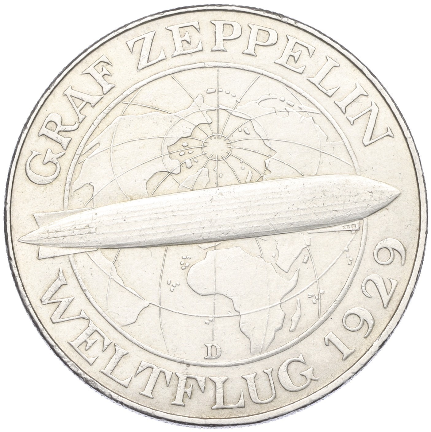 5 рейхсмарок 1930 года D Германия «Полет дирижабля Граф Цеппелин»