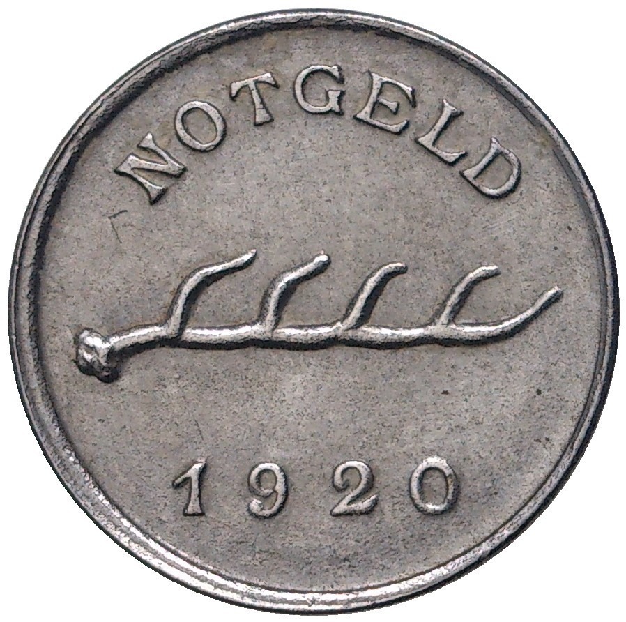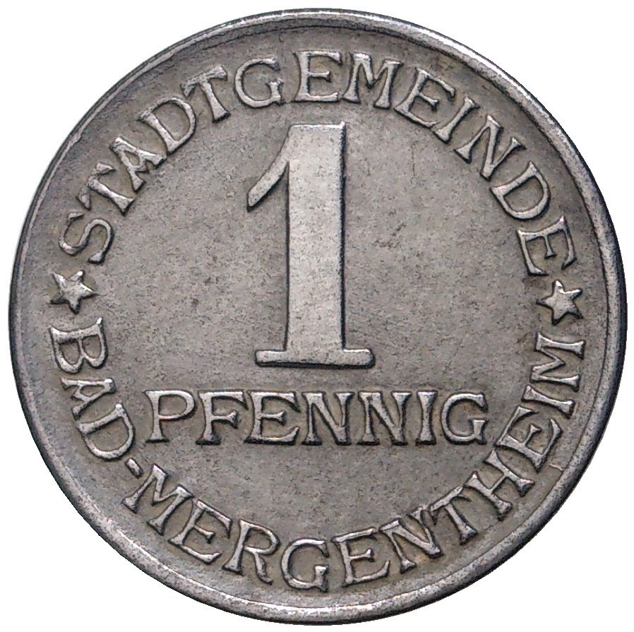 1 пфенниг 1920 года Германия — город Мергентхайм (Нотгельд)