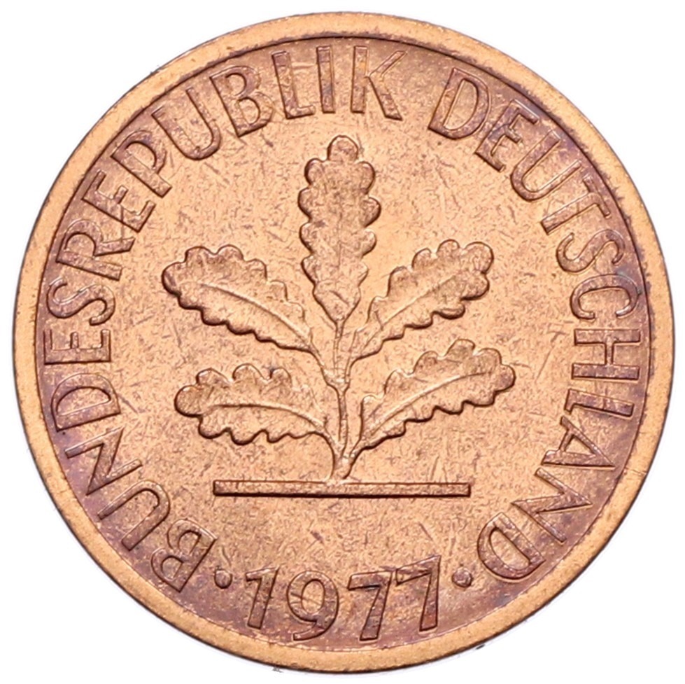 1 пфенниг 1977 года D Западная Германия (ФРГ)