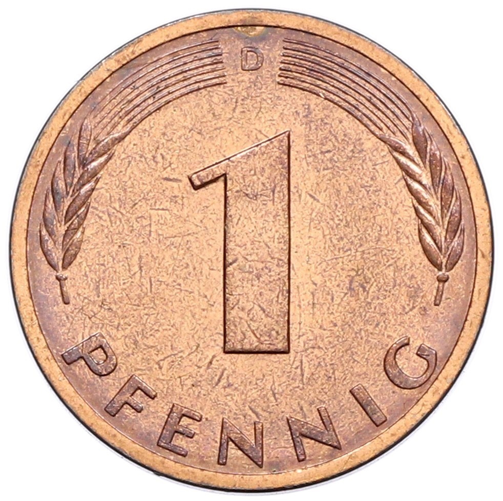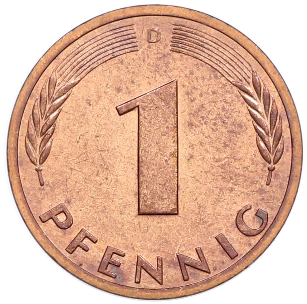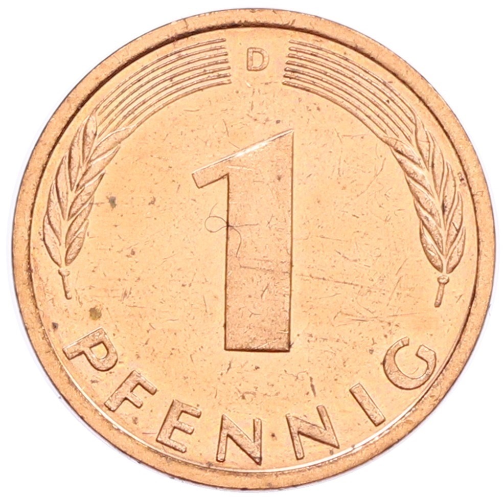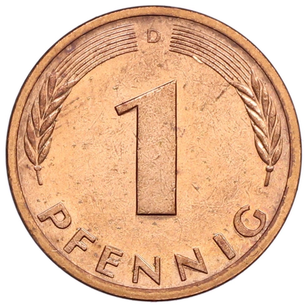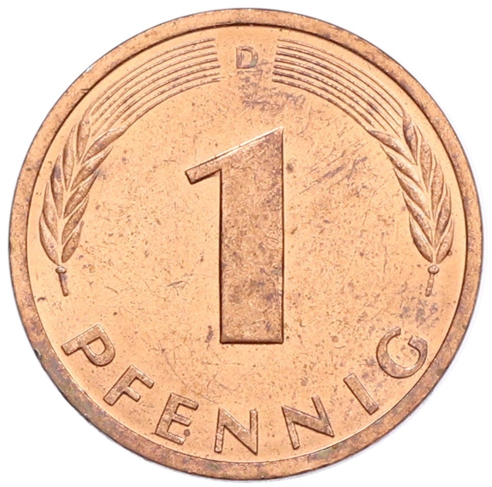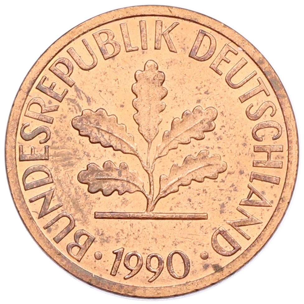 1 пфенниг 1990 года D Западная Германия (ФРГ)