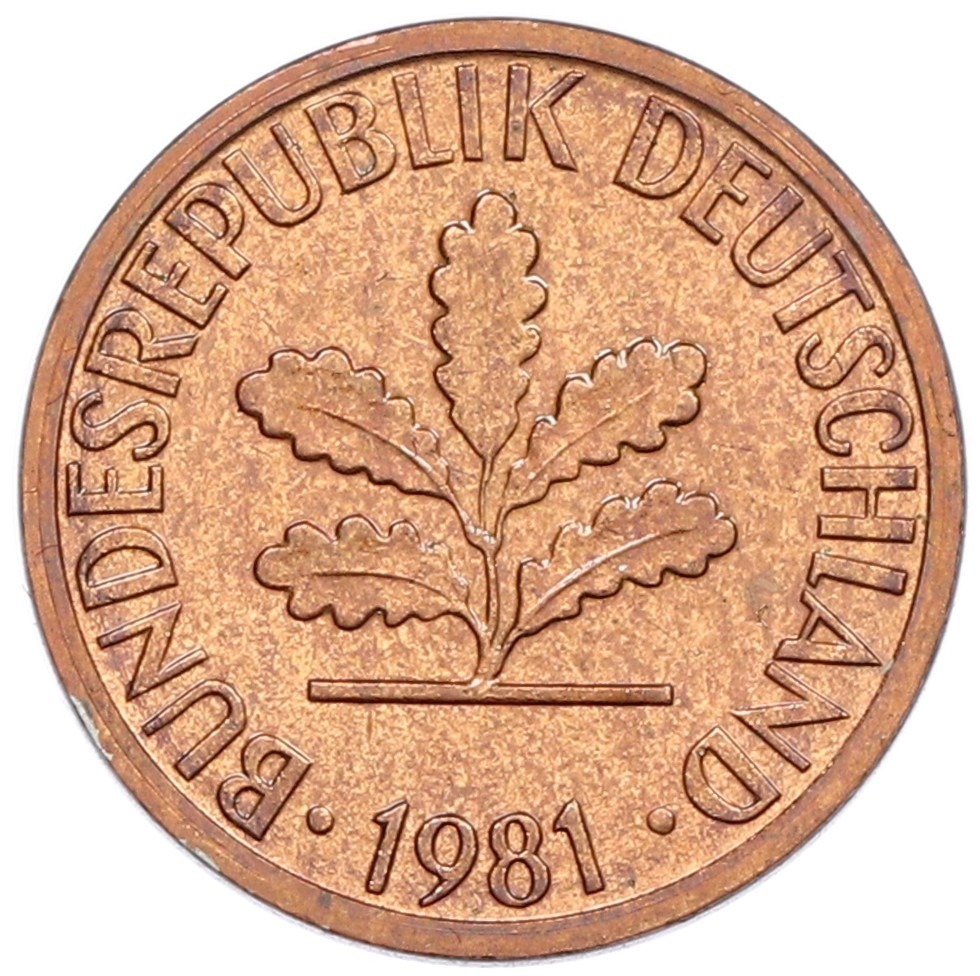 1 пфенниг 1981 года F Западная Германия (ФРГ)