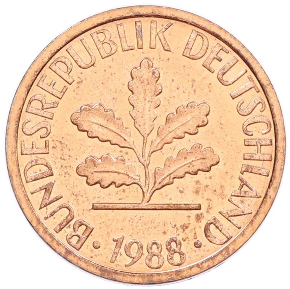 1 пфенниг 1988 года D Западная Германия (ФРГ)