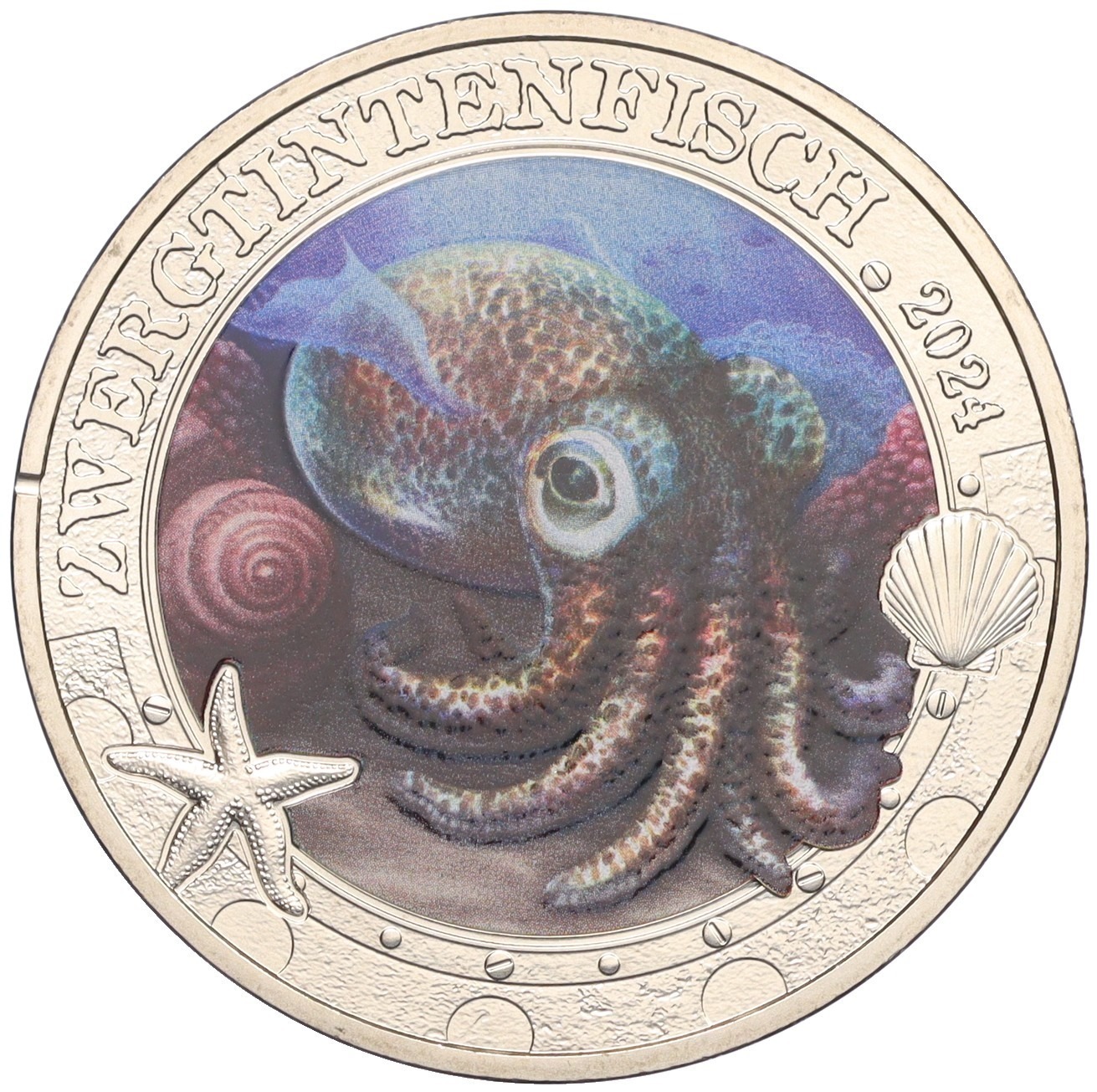 3 евро 2024 года Австрия «Светящаяся морская жизнь — Кальмар-бобтейл»