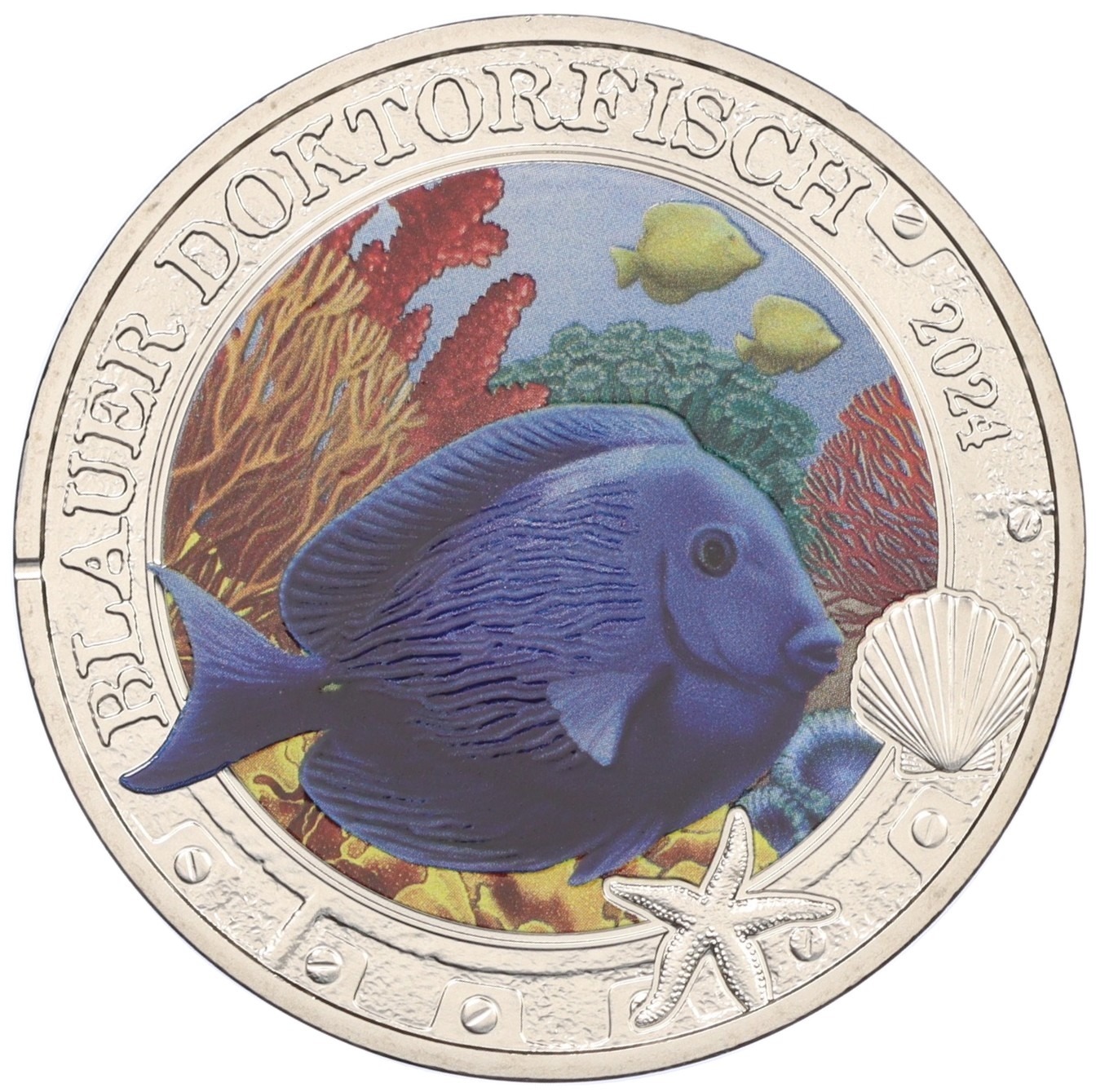 3 евро 2024 года Австрия «Светящаяся морская жизнь — Рыба-хирург»