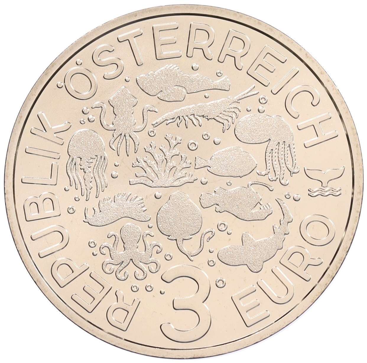 3 евро 2023 года Австрия «Светящаяся морская жизнь — Антарктический криль»