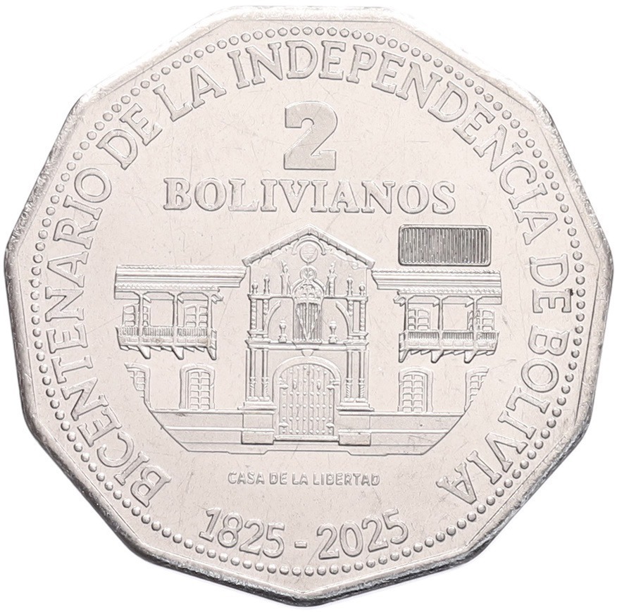 2 боливиано 2025 года Боливия «200 лет Независимости»
