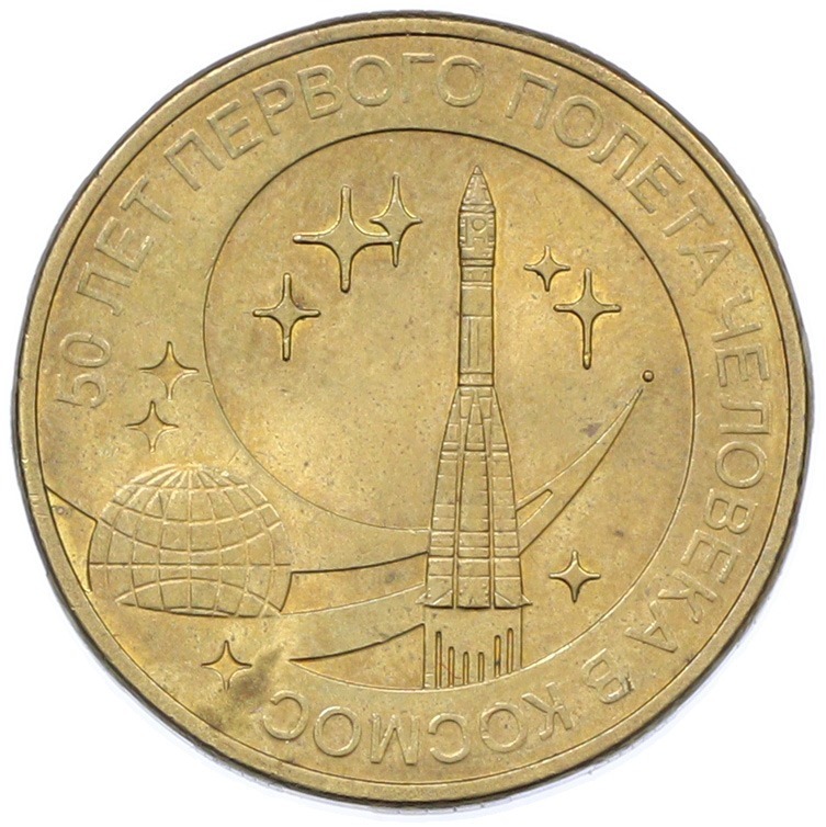 10 рублей 2011 года СПМД «50 лет первого полета человека в космос»