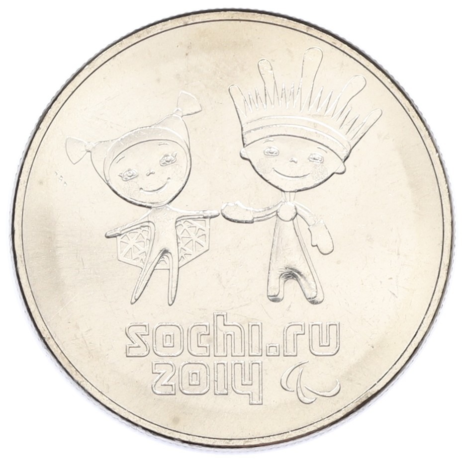 25 рублей 2013 года СПМД «XXII зимние Олимпийские Игры 2014 в Сочи — Талисманы Паралимпиады»