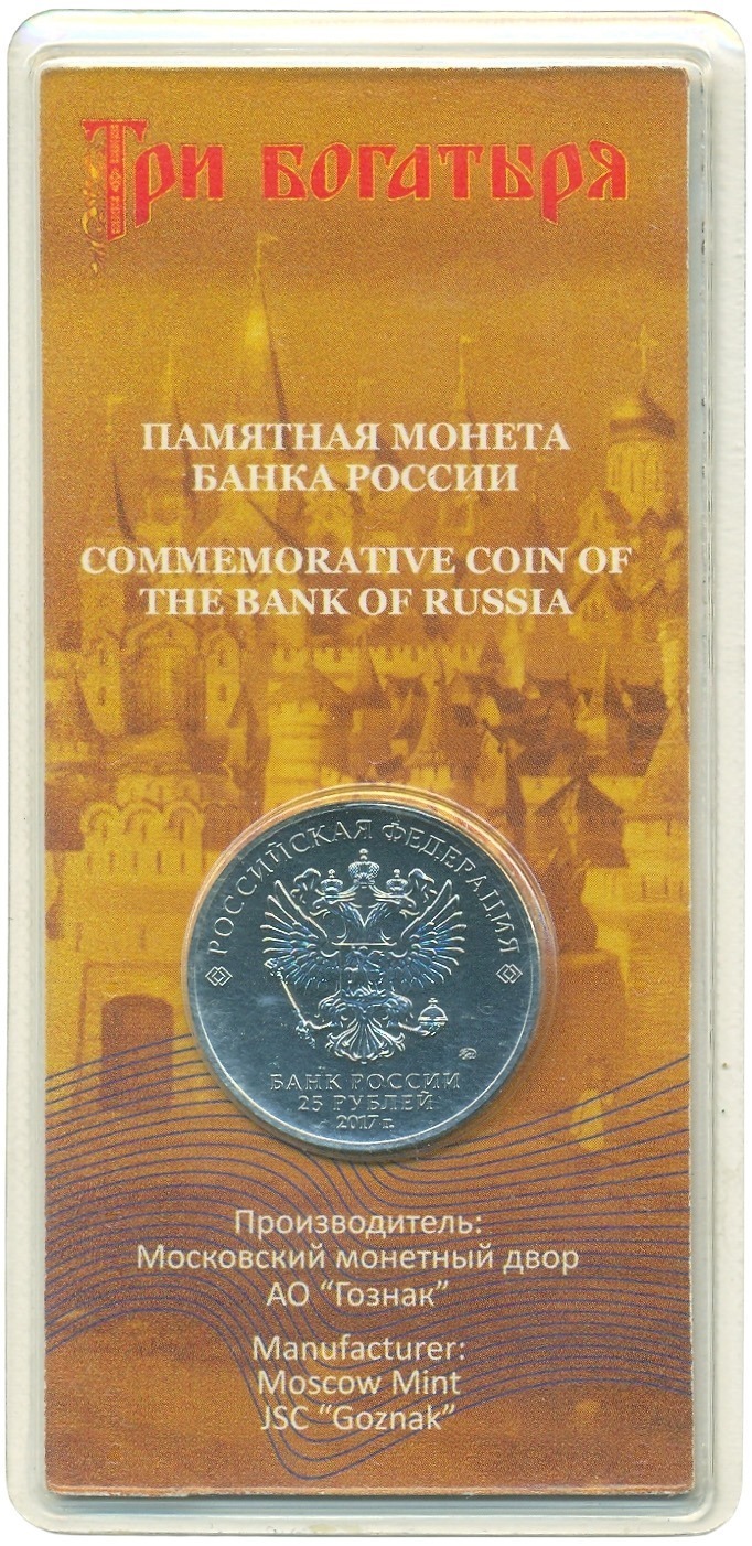 25 рублей 2017 года ММД «Российская (советская) мультипликация — Три богатыря»