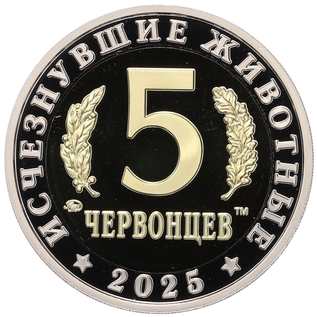 Монетовидный жетон 5 червонцев 2025 года ММД «Исчезнувшие виды — Дунклеостей»