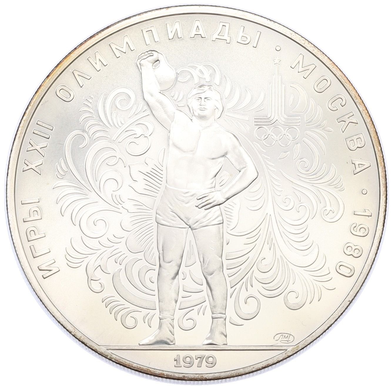 10 рублей 1979 года ЛМД «XXII летние Олимпийские Игры 1980 в Москве (Олимпиада-80) — Поднятие гири»