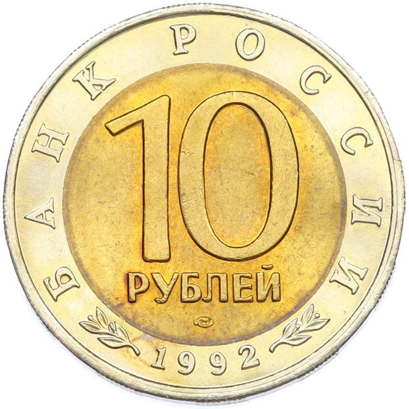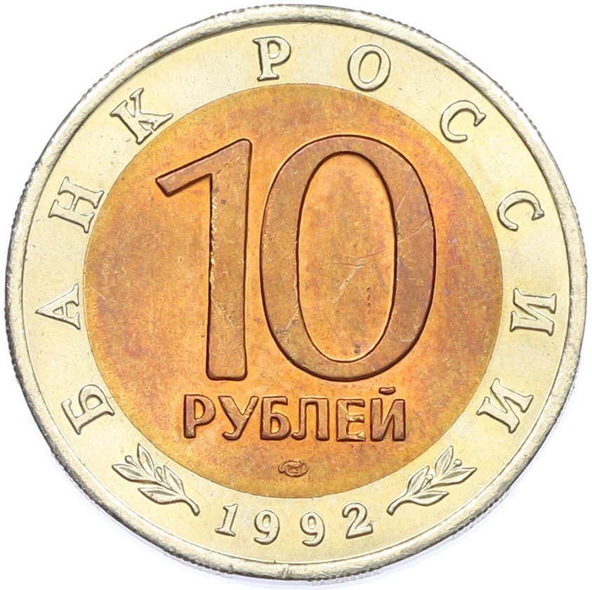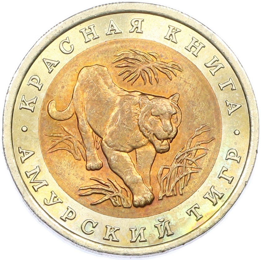 10 рублей 1992 года ЛМД «Красная книга — Амурский тигр»