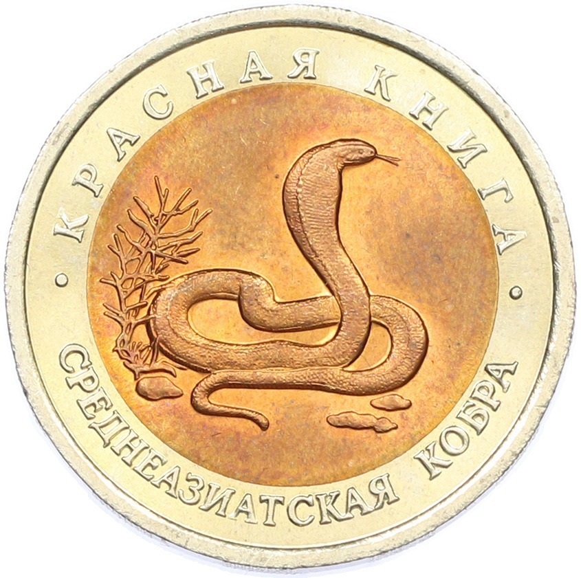 10 рублей 1992 года ЛМД «Красная книга — Среднеазиатская кобра»