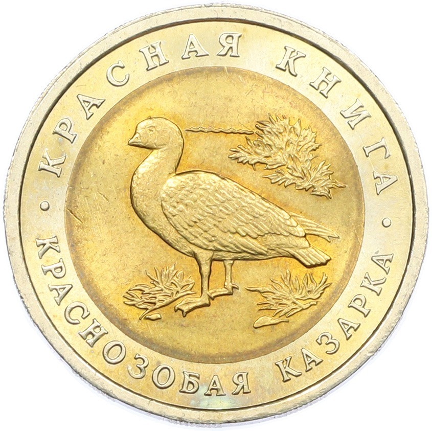 10 рублей 1992 года ЛМД «Красная книга — Краснозобая казарка»